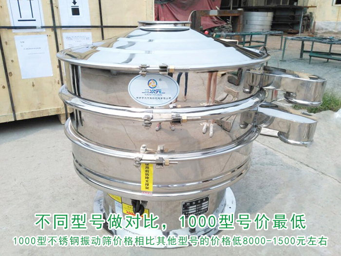 在滿足時篩500KG的花椒粉的前提下小編針對不同型號相同層數(shù)的振動篩設(shè)備作對比,1000型不銹鋼振動篩價格相比其他型號的價格低8000-1500元左右。