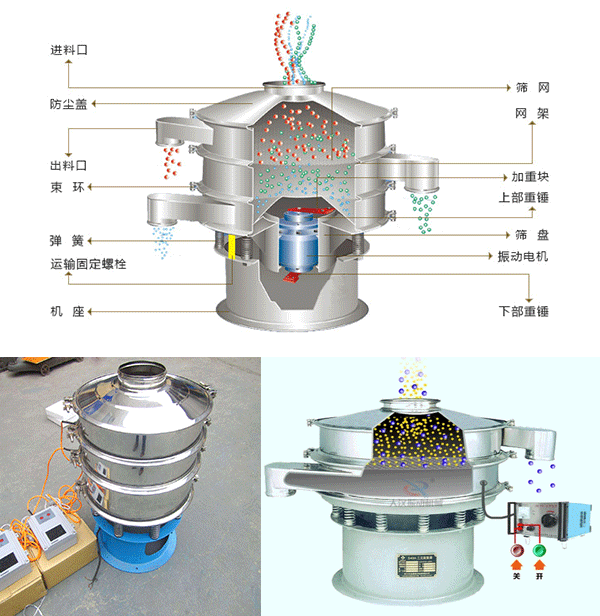 不銹鋼振動(dòng)篩是一種高精度的篩分設(shè)備,采用立式電機(jī)作為激振源,電機(jī)上下兩端安裝有偏心塊,可將電機(jī)的旋轉(zhuǎn)運(yùn)動(dòng)轉(zhuǎn)變?yōu)樗酱怪眱A斜的三次元運(yùn)動(dòng)把這個(gè)運(yùn)動(dòng)傳遞給篩面。使篩面上的玉米淀粉被拋起跳躍運(yùn)動(dòng)從而達(dá)到對(duì)玉米淀粉進(jìn)行篩選和分級(jí)的目的。