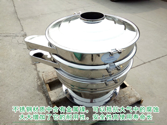 不銹鋼振動篩采用不銹鋼材質(zhì)制作而成,不銹鋼材質(zhì)不易生銹,防腐性能高,不銹鋼材質(zhì)中含有金屬鎳,可以抵抗大氣中的腐蝕,大大增加了它的耐用性。安全性高使用壽命長