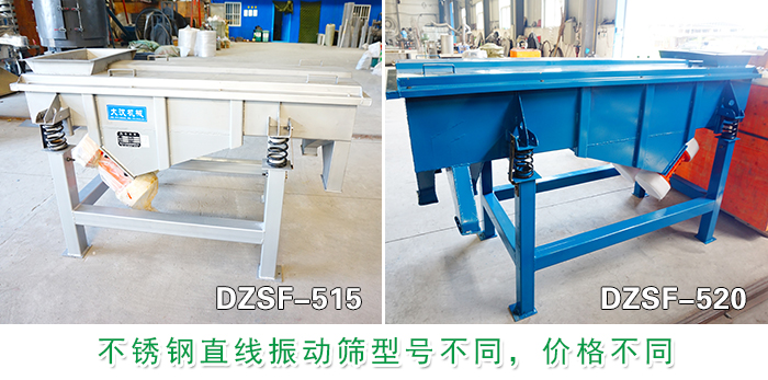葡萄干不銹鋼直線振動(dòng)篩型號(hào)有:DZSF-515、DZSF-520、DZSF-530、DZSF-1020、DZSF-1030、DZSF-1540等不同型號(hào),根據(jù)不同葡萄干的篩分規(guī)格產(chǎn)量需求,還有篩分設(shè)備材質(zhì)結(jié)構(gòu)、生產(chǎn)場(chǎng)地等條件選擇不同的型號(hào),還可根據(jù)特性需求加長加寬定制,不同的型號(hào)之間價(jià)格相差在2500元以上。