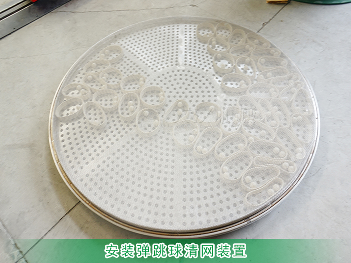可在不銹鋼振動篩篩框與篩網(wǎng)之間安裝自動清網(wǎng)裝置,它是通過其中的彈跳球經(jīng)過不斷的進(jìn)行上下往復(fù)跳動撞擊篩網(wǎng),使粘、卡在篩孔之間的水泥被撞擊彈起、落下實(shí)現(xiàn)有效清網(wǎng)的作用。可以降低篩面堵孔的機(jī)率提高篩分物料的透篩率,提升篩分產(chǎn)量。
