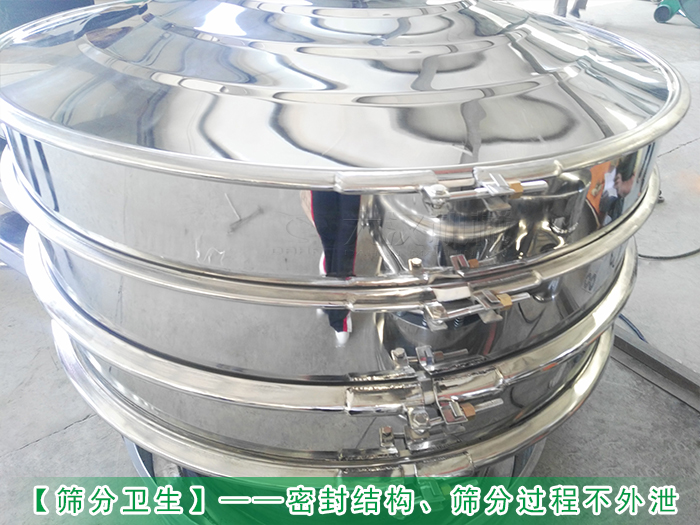 不銹鋼振動(dòng)篩整機(jī)采用密閉式結(jié)構(gòu),可以避免物料在篩分過(guò)程中溢散,防止浪費(fèi)物料的同時(shí)還對(duì)現(xiàn)場(chǎng)環(huán)境造成污染,上部分進(jìn)料口處加裝有防塵蓋、篩框與篩網(wǎng)之間有密封膠圈、軟連接等進(jìn)行隔離和密封,防止灰塵進(jìn)入混入物料中不會(huì)受到污染,所采用的密封件均為硅膠材質(zhì)符合食品行業(yè)的篩分要求。