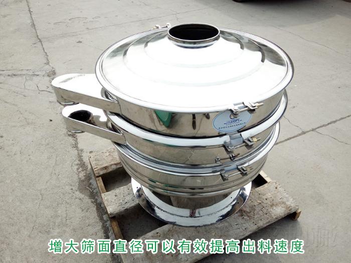不銹鋼振動篩一般采用金屬編織網(wǎng)或沖孔板篩網(wǎng),如果想要提高出料速度可以增大篩面直徑更換比之前更大直徑的篩網(wǎng)進行篩分,整加整個篩面的開孔率,可以有效提高出料速度。